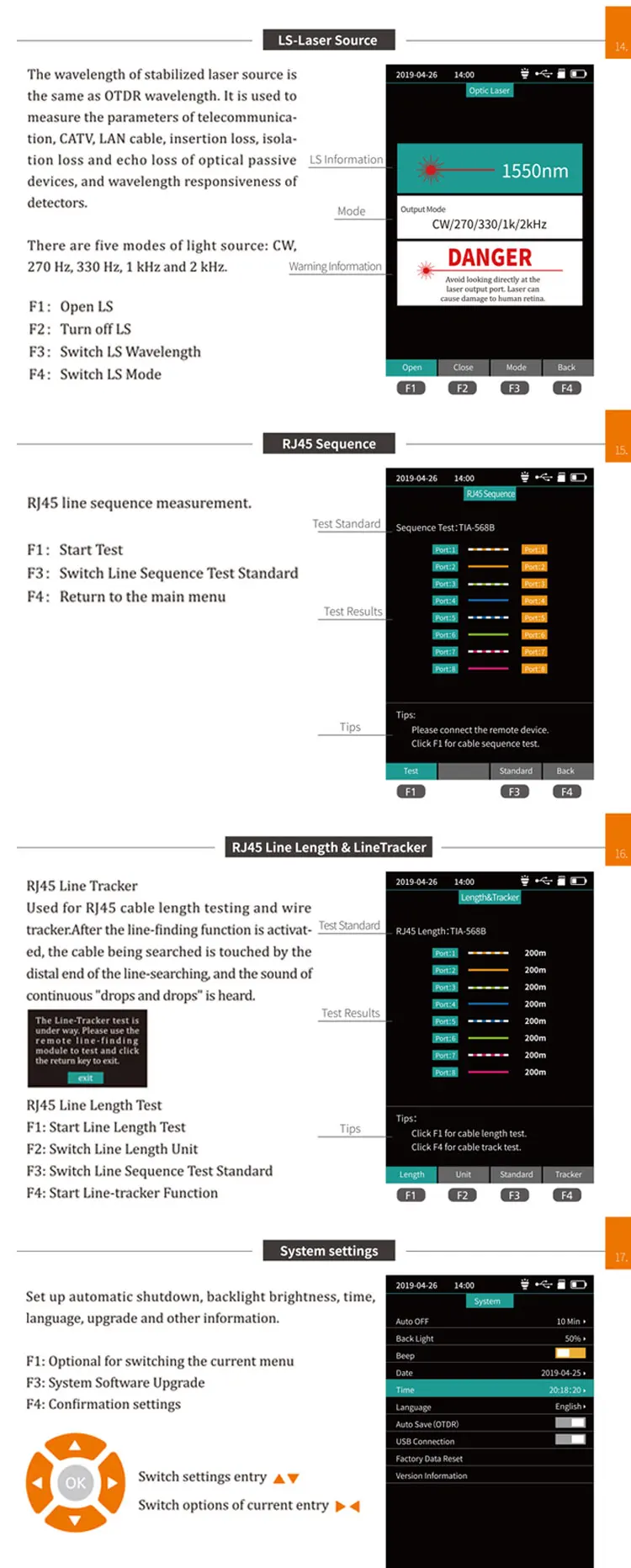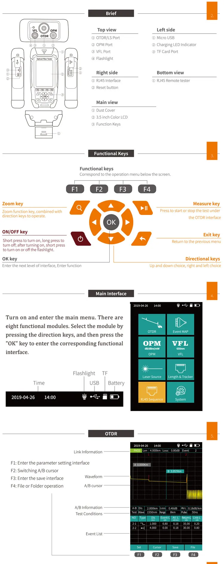 OTDR puede medir la longitud de la fibra óptica, la atenuación de la transmisión de la fibra óptica, la atenuación de las articulaciones y la ubicación de las fallas.